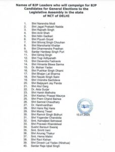 देहरादून। दिल्ली चुनाव के लिये भाजपा ने स्टार प्रचारकों की लिस्ट जारी की। उत्तराखंड में नगर निकाय चुनाव में भाजपा...