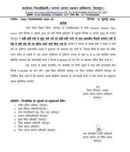 देहरादून। भारत मौसम विज्ञान विभाग, देहरादून एवं एन०डी०एम०ए० के सचेत National Disaster AlertPortal द्वारा दिनांक 31 जुलाई, 2024 को जारी...