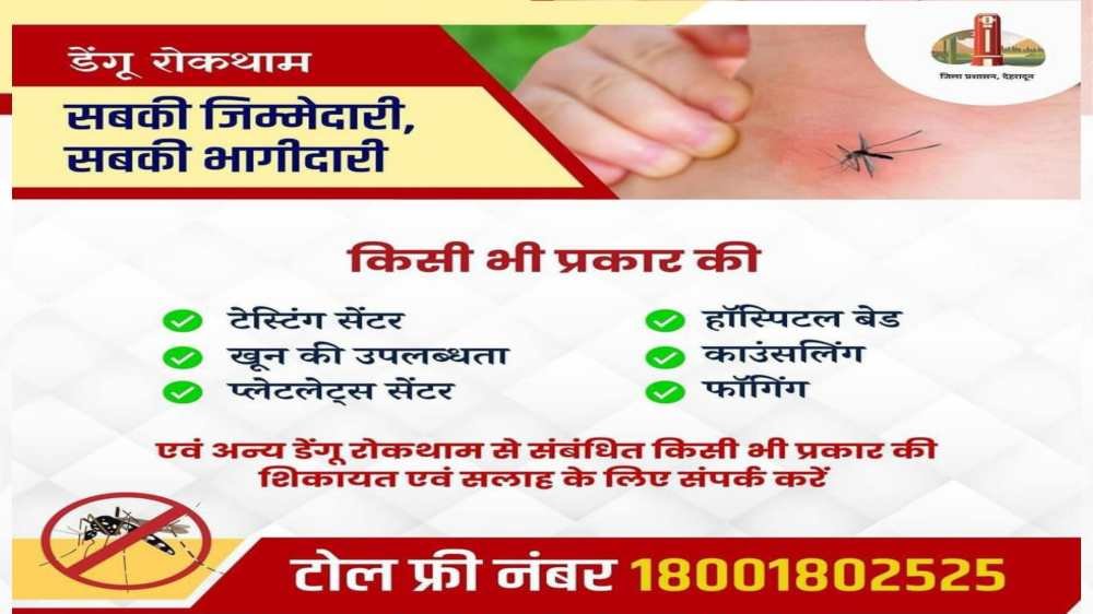 देहरादून: जिलाधिकारी सोनिका के निर्देशन पर जनपद देहरादून में डेंगू नियंत्रण एवं बचाव हेतु डीआईसीसीसी में कंट्रोल रूम स्थापित किया...