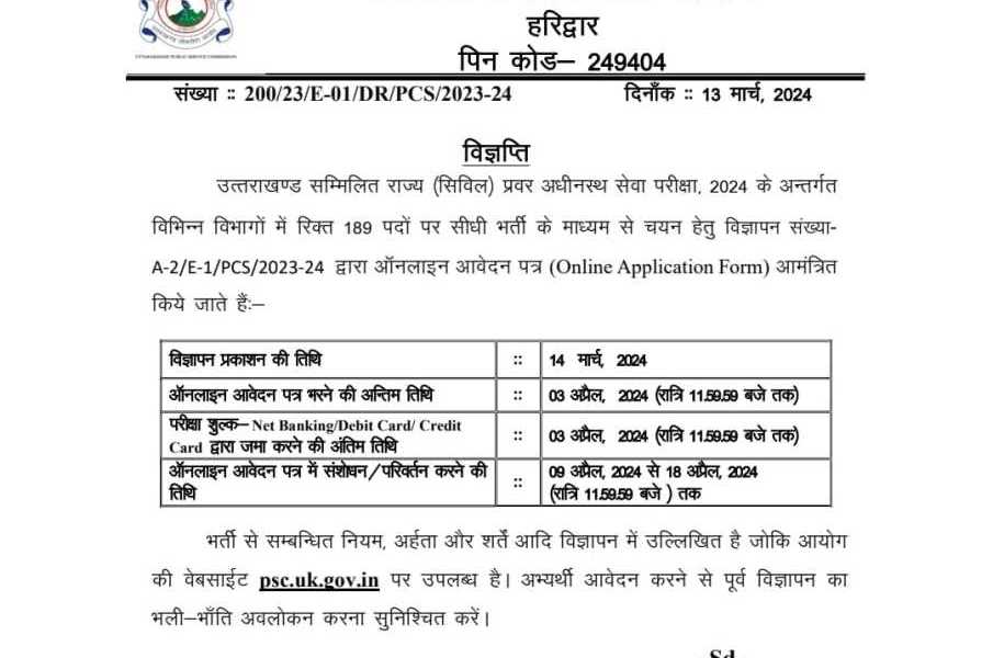 देहरादून। उत्तराखण्ड लोक सेवा आयोग ने उत्तराखण्ड सम्मिलित राज्य (सिविल) प्रवर अधीनस्थ सेवा परीक्षा, 2024 के अन्तर्गत विभिन्न विभागों में...