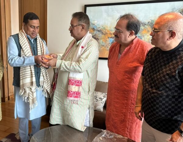 कृषि मंत्री गणेश जोशी ने असम के पर्यटन मंत्री जयंत मल्ला बारूह को उत्तराखण्ड के रेशम से बनी शॉल और प्रसाद किया भेंट