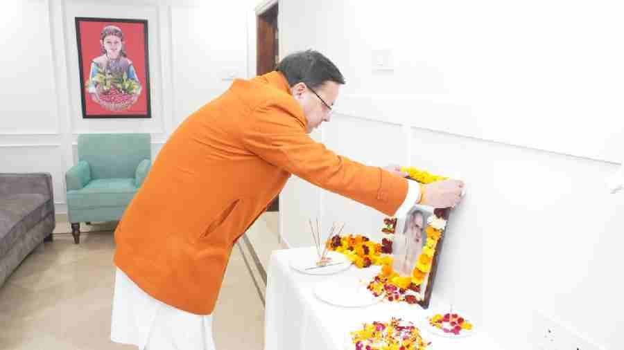 देहरादून: मुख्यमंत्री पुष्कर सिंह धामी ने मंगलवार को उत्तराखण्ड निवास नई दिल्ली में स्वर्गीय इंद्रमणि बड़ोनी की जयन्ती के अवसर पर उनके चित्र पर माल्यार्पण कर उन्हें श्रद्धांजलि अर्पित की है। मुख्यमंत्री ने कहा कि पृथक उत्तराखंड राज्य निर्माण आन्दोलन में स्वर्गीय इंद्रमणि बड़ोनी का महत्वपूर्ण योगदान रहा है।