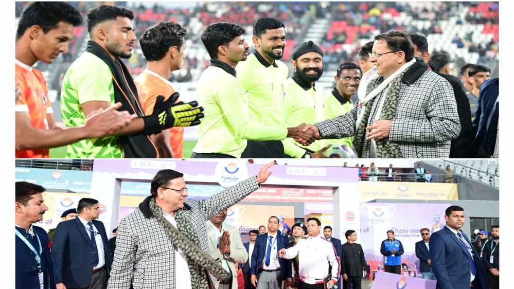 हल्द्वानी: मुख्यमंत्री पुष्कर सिंह धामी ने बुधवार को हल्द्वानी स्थित गौलापार स्पोर्ट्स स्टेडियम में आयोजित हो रहे 38वें राष्ट्रीय खेलों की विभिन्न व्यवस्थाओं का निरीक्षण किया। इस अवसर पर मुख्यमंत्री ने स्टेडियम में उत्तराखंड एवं दिल्ली के मध्य खेले गए फुटबॉल सेमीफाइनल मैच में खिलाड़ियों से परिचय प्राप्त कर फुटबॉल मैच का अवलोकन भी किया। साथ ही खिलाड़ियों का मनोबल बढ़ाते हुए उत्साहवर्धन किया।