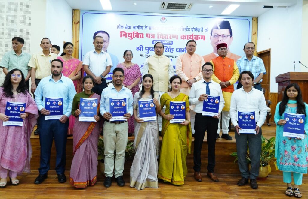 देहरादून: मुख्यमंत्री पुष्कर सिंह धामी ने मंगलवार को मुख्यमंत्री आवास स्थित मुख्य सेवक सदन में उच्च शिक्षा विभाग के अन्तर्गत लोक सेवा आयोग, उत्तराखण्ड से चयनित 72 असिस्टेंट प्रोफेसर को नियुक्ति पत्र प्रदान किये। समाजशास्त्र, अर्थशास्त्र और अंग्रेजी विषय में चयनित असिस्टेंट प्रोफेसर को आज नियुक्ति पत्र प्रदान किये गये। इस अवसर पर मुख्यमंत्री ने राज्य के मेधावी छात्रों के लिए नेशनल इंस्टीट्यूशनल रैंकिंग फ्रेमवर्क (एन.आई.आर.एफ) इंस्टीट्यूट में 50 हजार रूपये की धनराशि प्रदान किये जाने के लिए पोर्टल का शुभांरभ भी किया।